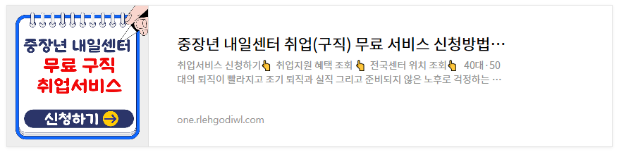 🔻중장년 내일센터도 취업서비스를 제공하고 있으니 아래 블로그 참조해 보세요~!🔻