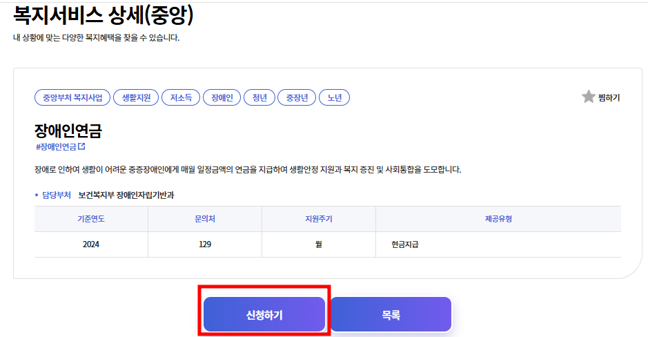 ③ 복지서비스 > 장애인 연금순으로 클릭