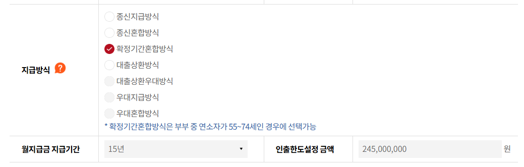 -확정기간방식: 원하는 지급 기간(15~30년) 선택.
