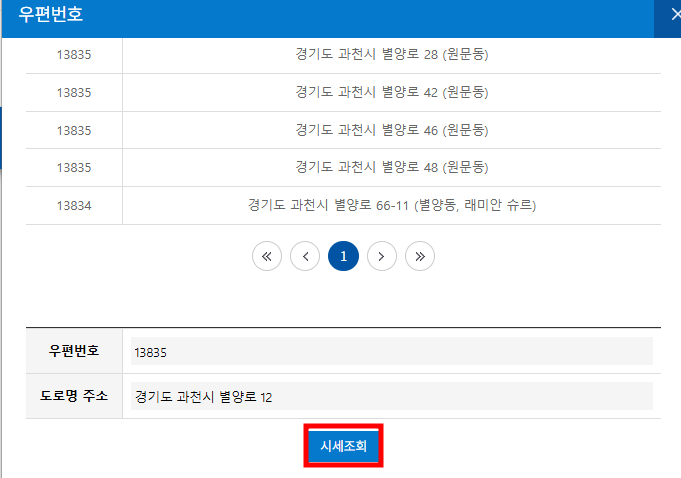 - [시세검색] 버튼 클릭.
