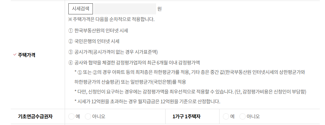 - 주택구분 선택: 소유 중인 주택의 종류를 선택합니다