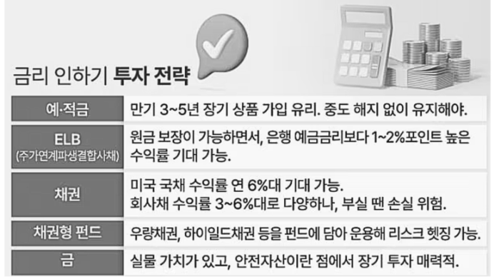 📌 결론: 금리가 계속 내려갈 가능성이 높으므로, 예금보다 채권·국채·ELB 같은 대체 투자 고려!