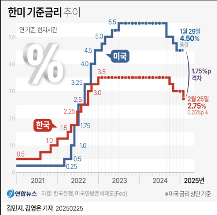 한국은행이 기준금리를 3.00%에서 2.75%로 인하했습니다.