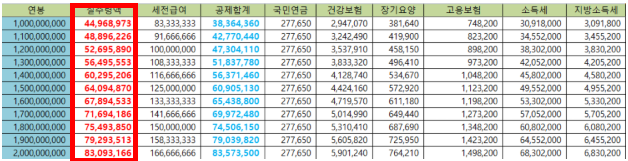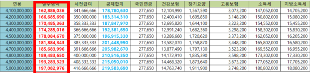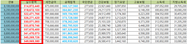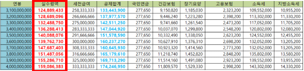 하지만 실수령률은 약 47% 전후에 머무는 만큼, 연봉이 아무리 커도 세금 부담이 결코 가볍지 않다는 걸 알 수 있죠.