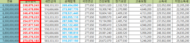 2025년 기준으로 연봉별 세후 월급을 구간별로 정리해 보았습니다.