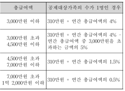 - 종교인 과세, 특별공제, 기타 소득은 제외한 일반 기준