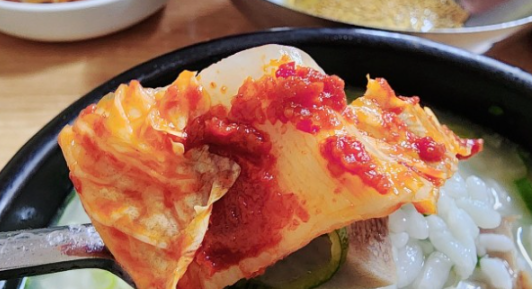 매운 편이지만, 국밥 국물과 함께 먹으면 중화되어 부담 없이 즐길 수 있는 매운맛입니다.