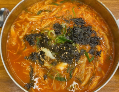 또 하나의 대표 메뉴는 강릉식 장칼국수입니다. 보기에는 빨간 국물이지만, 매운맛보다 구수함과 감칠맛이 주를 이루는 깊이 있는 국물이 인상적입니다.