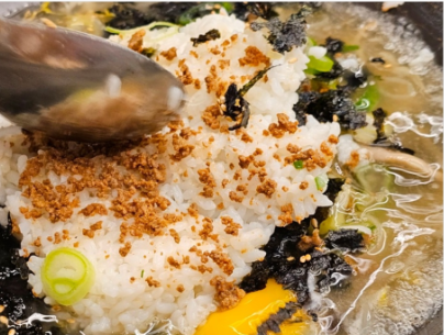 여기에 더해진 육수는 하루 이상 정성 들여 끓인 천연 재료 기반의 깊고 맑은 국물로, 첫 숟갈부터 깔끔하고 개운한 맛이 느껴집니다.