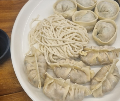 A. 매일 아침마다 신선한 채소와 고기를 다져 넣어 만든 손만두로, 담백하고 속이 꽉 차 있습니다.