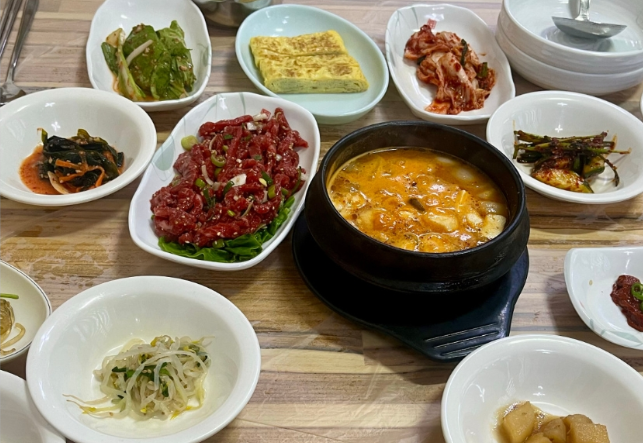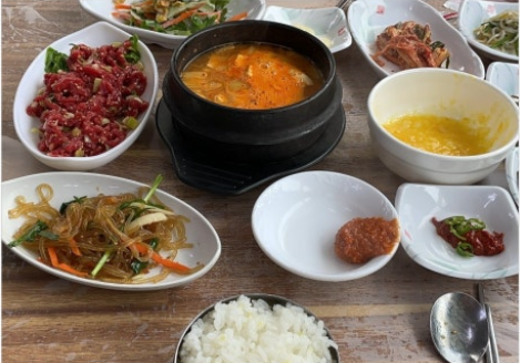 밥맛, 반찬, 육회, 된장찌개까지 빠지는 것 없이 꽉 찬 밥상.
