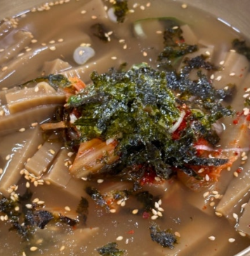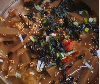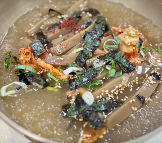 시원한 육수에 탱글탱글한 도토리묵, 김가루, 오이채, 양념장이 어우러지며 입안 가득 청량함을 선사합니다.