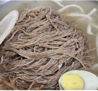 이곳의 메밀면은 시중에서 흔히 볼 수 있는 제면 냉면과는 질감부터 확연히 다릅니다.