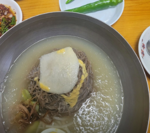 고명에 의존하지 않고도 육수만으로 승부를 본다는 이 냉면.