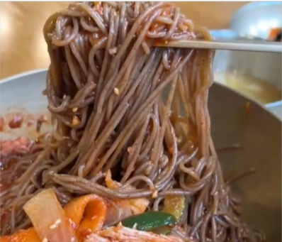 이 식당의 면은 100% 통메밀을 직접 제분하고 뽑아내어 부드럽고 고소한 풍미가 남다릅니다.