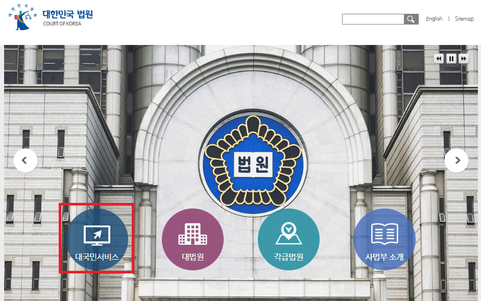 ① 대법원 홈페이지 접속 > 대국민 서비스 클릭