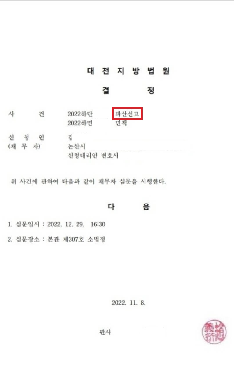 *법원의 파산선고문 [견본] ![]() |