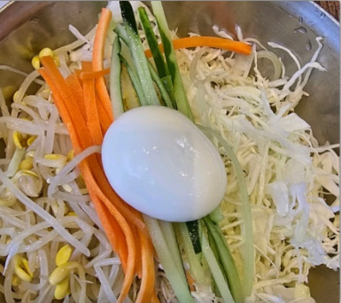 쫄깃한 면발 위로 양배추, 오이, 콩나물, 당근이 푸짐하게 올라가며, 고소하면서도 매콤달콤한 양념이 입맛을 확 살려줍니다.