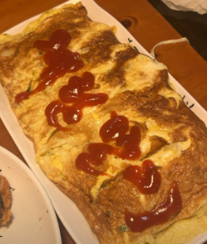 - 치즈 계란말이: 고소하고 부드러운 치즈가 듬뿍, 위에 감성적인 손글씨 플레이팅