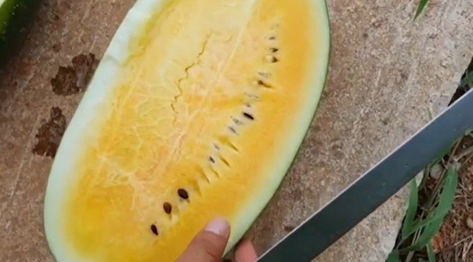 일반 수박은 붉은 과육이 익숙하지만, 이곳의 수박은 속을 가르면 노랗게 빛나는 과육이 드러납니다.