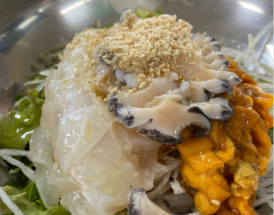 특히 바다향이 진하게 풍기는 멍게와 부드러운 가자미, 탱글한 오징어가 어우러져한 숟가락마다 동해의 풍미가 입안 가득 퍼지는 듯한 경험을 할 수 있죠.