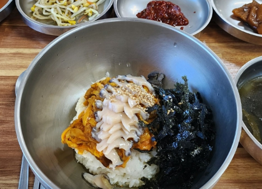 함께 제공되는 멍게비빔밥은 별도 주문이 가능하며,비린내 없이 멍게 고유의 향이 그대로 살아있고, 참기름과 김가루의 조화가 환상적이에요.