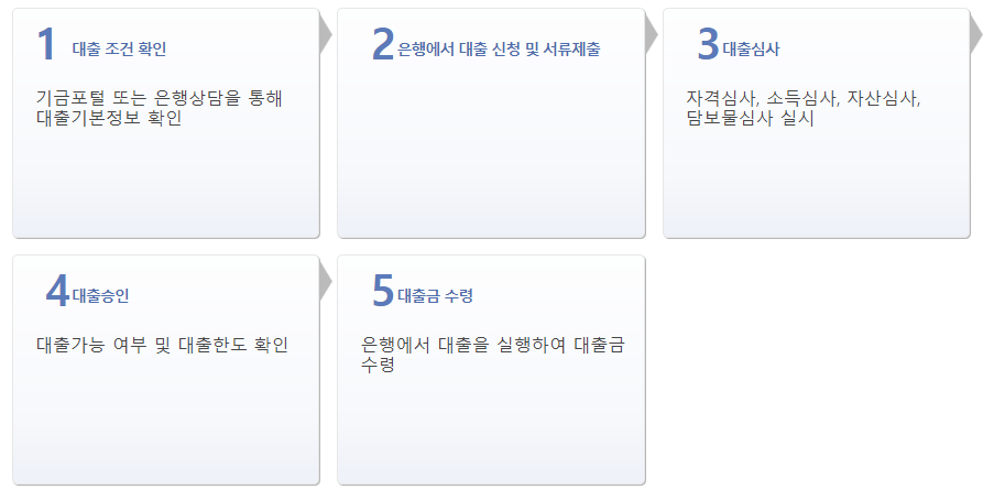④ 대출 심사 및 실행: 심사 후 대출이 승인되면 주거 마련을 위한 대출이 실행됩니다.