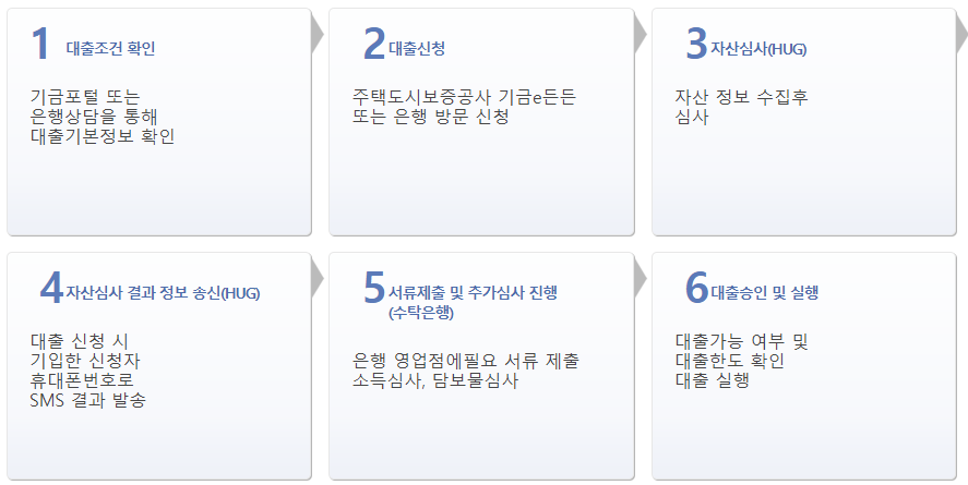 중소기업취업청년 전월세보증금대출 신청 후 업무 처리절차는 아래와 같습니다.